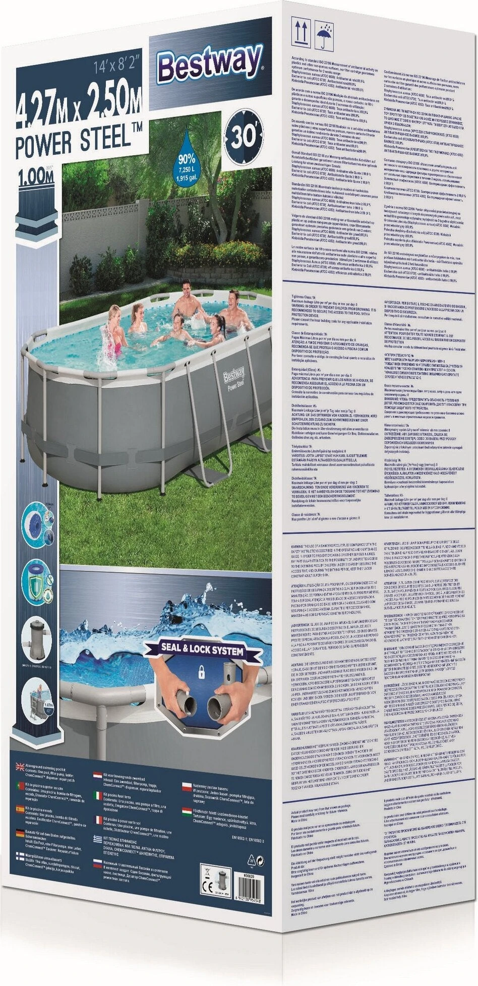 Als het kwik stijgt gaat er niets boven waterpret in eigen tuin! Met dit ovale frame zwembad uit de serie Power Steel van Bestway hoef je dus niet meer weg en neem je gewoon een verkoelende plons in je eigen zwembad. Hoe fijn is dat!