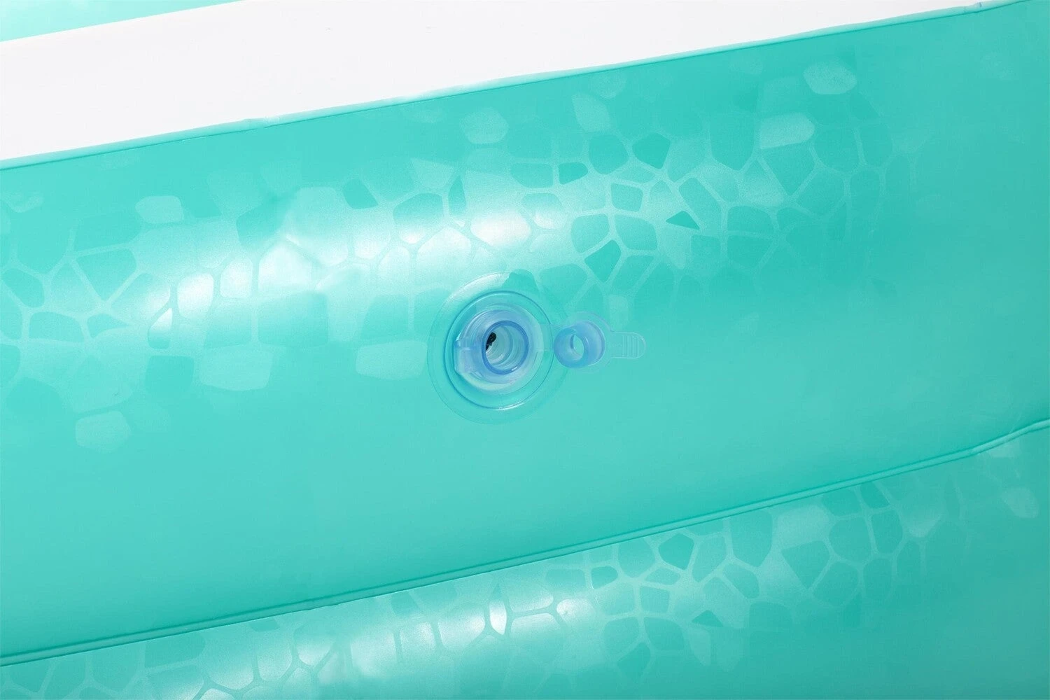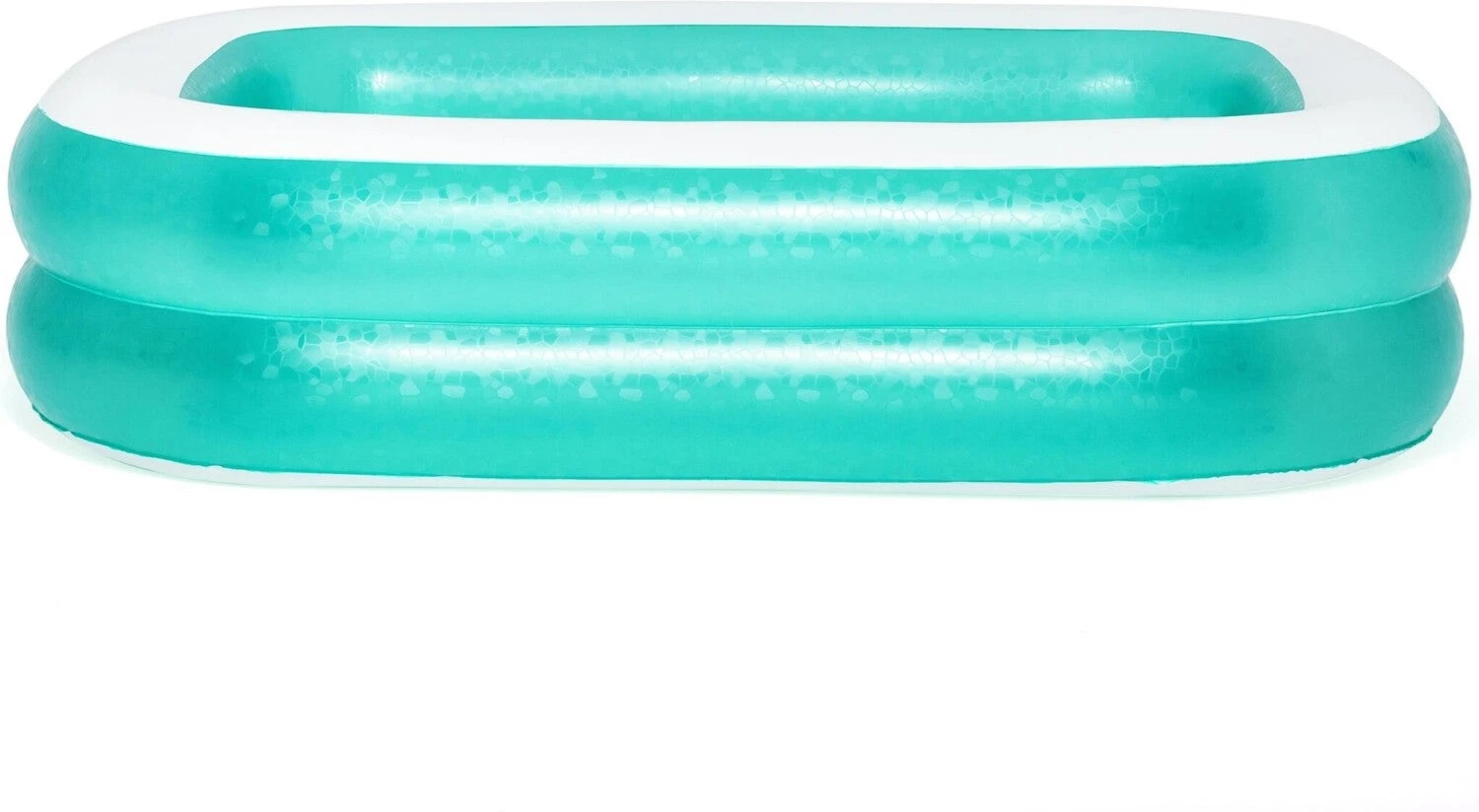 Met dit vrolijke Bestway kinderzwembad beleef je gegarandeerd uren speelplezier. Het rechthoekige opblaasbare zwembad heeft 2 gelijke ringen met een blauwe kleur aan buitenzijde. Dit praktische en populaire bad heeft extra brede wanden en is uitgerust met een aftapplug, waardoor het eenvoudig is om het zwembad leeg te laten lopen. Het bad is geschikt voor kinderen vanaf 6 jaar.