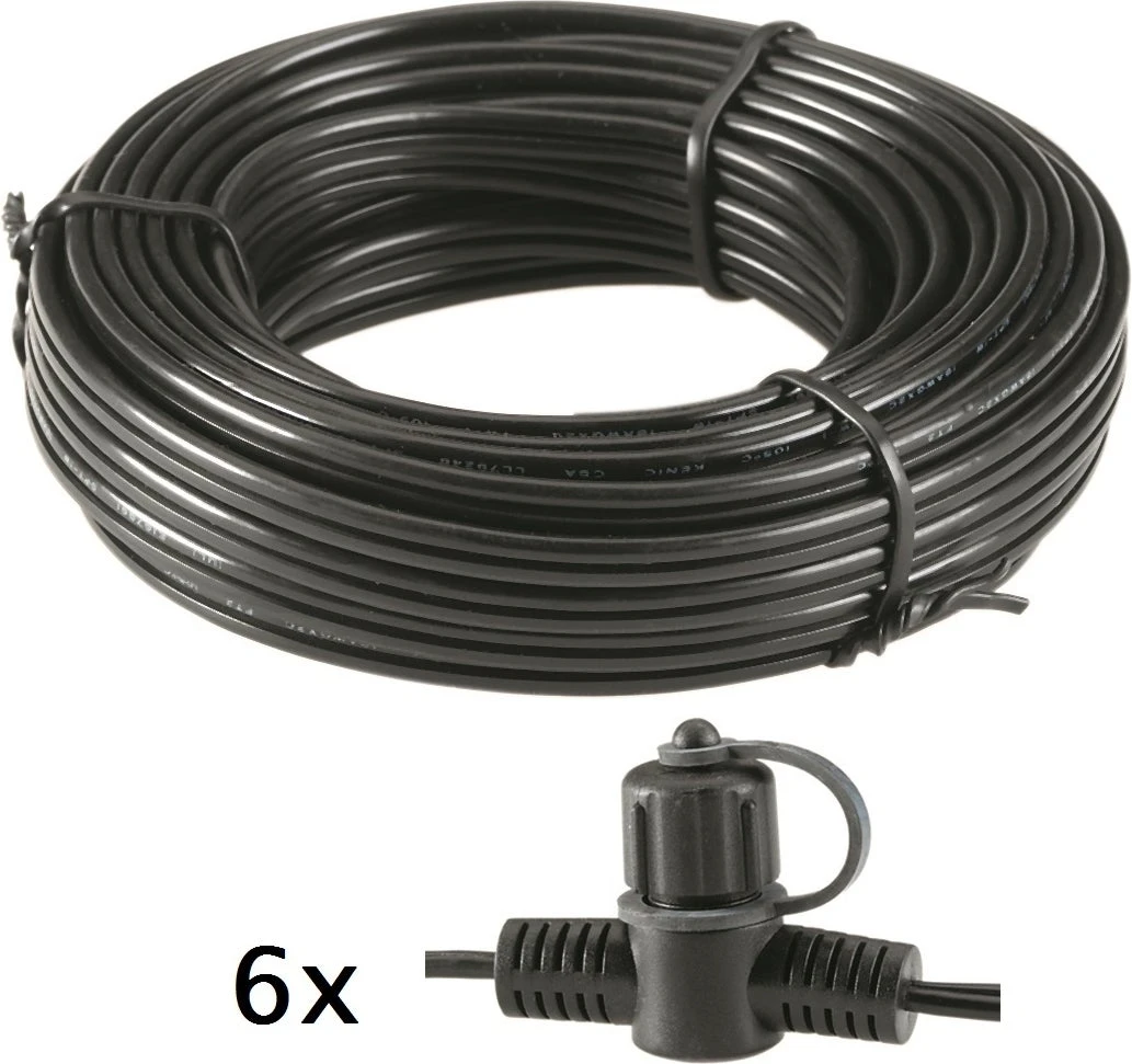 Dit is de 15 meter lange hoofdkabel van de 12v lijn met 6 aansluitingen. SPT-3, maximaal 150W. In combinatie met een 150W of 300W transformator . Dit product is een onderdeel van de 12 volt lijn van Garden Lights. 12 volt is laagspanning en wordt beschouwd als zeer veilig. Het buitenverlichting systeem is voorzien van schroefverbindingen, dit zorgt voor een snelle aanleg van jouw tuinplan! Kies een buitenlamp binnen het 12v assortiment, kies de juiste transformator en de bijbehorende kabels. De 12 volt lijn is veilig, eenvoudig en sfeervol! Zie de bijbehorende handleiding voor meer uitleg over dit 12 volt systeem.