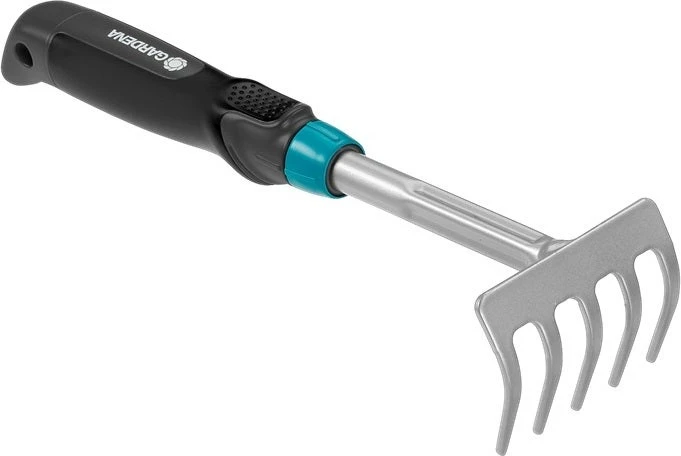 Het Gardena comfort handharkje heeft een ergonomische handgreep met elementen van zachte kunststof. De hoek aan het einde van de steel voorkomt dat je hand wegglijdt tijdens het werk.