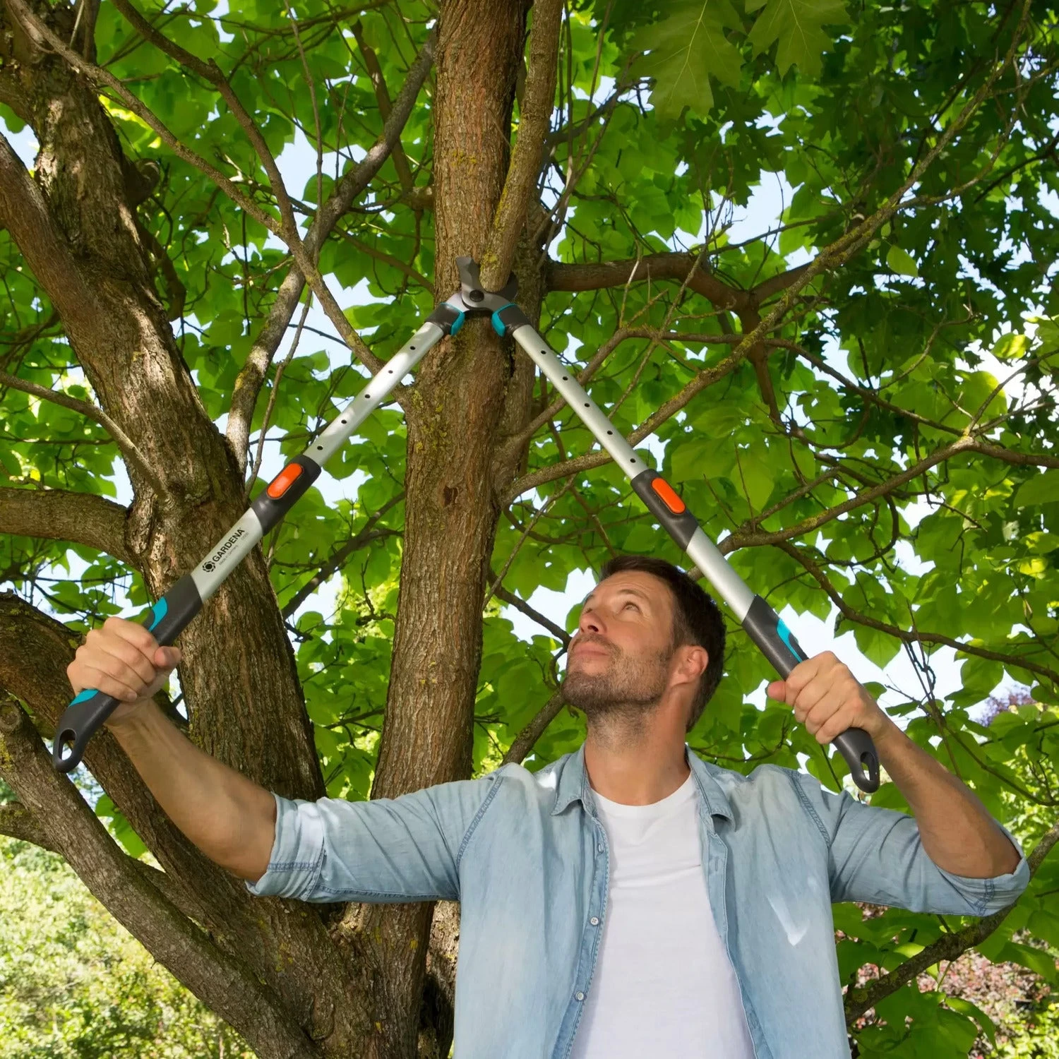 De Gardena takkenschaar TeleCut 650-900 B is een bypass snoeischaar voor het snoeien van vers hout. Vanwege het lage gewicht en de uitstekende werking van de armen, heeft u weinig kracht nodig om te snoeien. De in lengte verstelbare hefboomarmen maken ook het nauwkeurig snoeien van hogere takken mogelijk. Daarnaast beschermen stopbuffers van speciaal kunststof uw gewrichten. Precisiegeslepen messen met antikleeflaag garanderen een nauwkeurige snede die vriendelijk is voor planten. 25 jaar garantie.