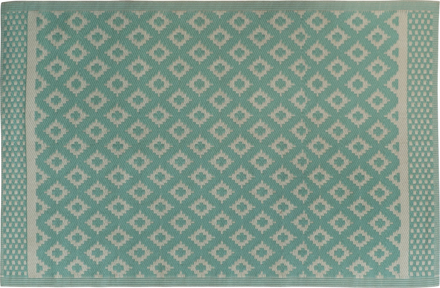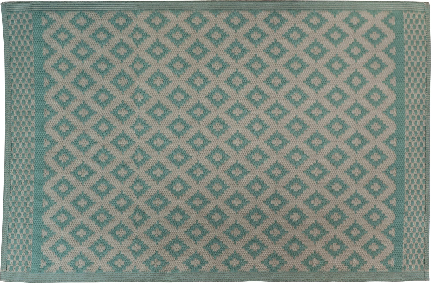 Dit buitenkleed van Intratuin fleurt jouw zithoek onmiddellijk op! Het buitenkleed is niet alleen een echte sfeermaker binnenshuis, maar haalt vooral ook de gezellige sfeer van jouw woonkamer naar buiten. Doordat het kleed weerbestendig is, kun je het kleed gerust buiten laten liggen. De speelse geometrische vormen in een aqua kleur maken het kleed helemaal af. Het buitenkleed is verkrijgbaar in verschillende kleuren.Let op : De kleden kunnen niet jaren mee omdat deze niet tegen UV kunnen.