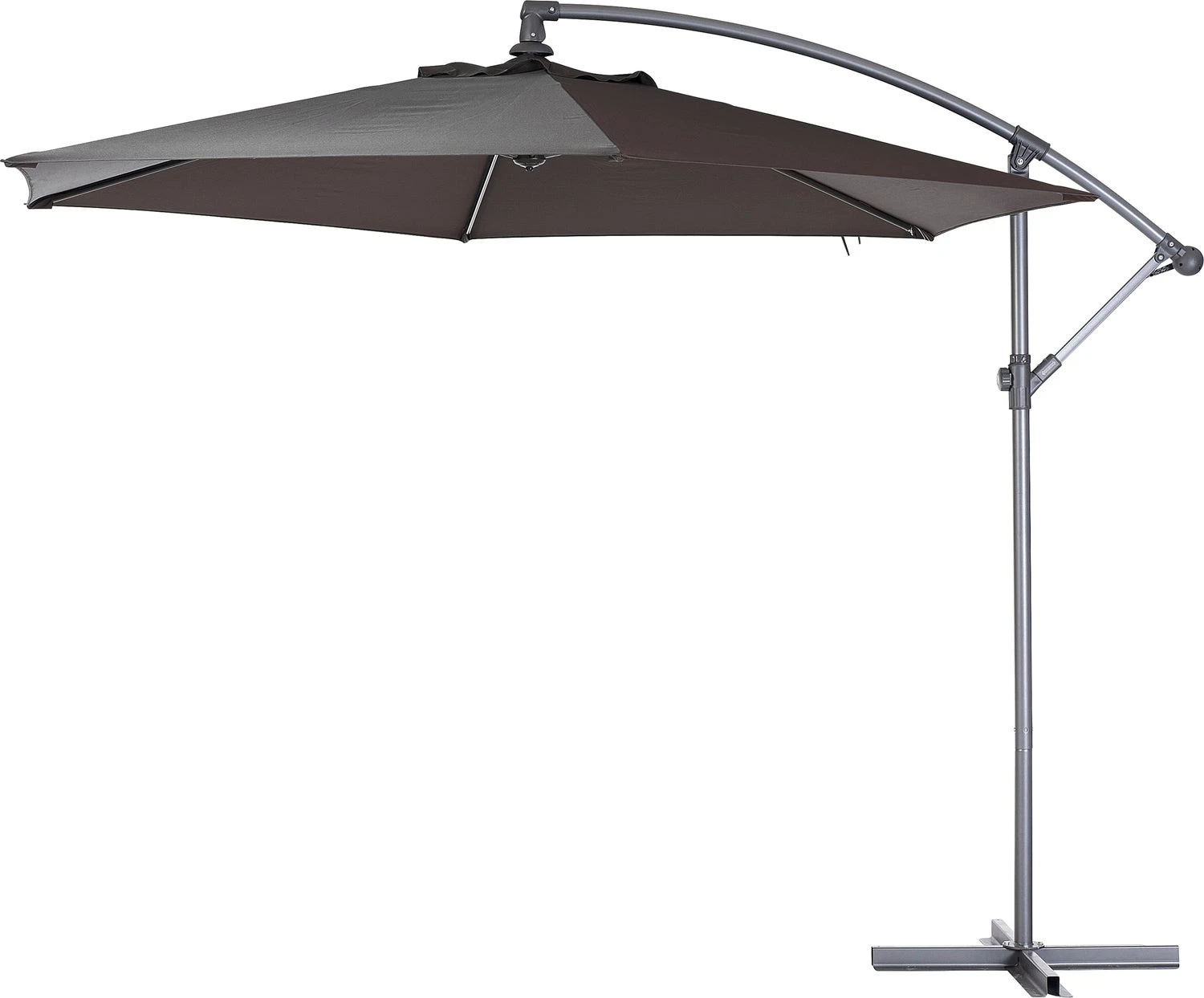 Deze zweefparasol is uitgevoerd met een metalen kruisvoetstandaard die verzwaard dient te worden met parasoltegels. De parasol is niet geschikt voor een gewone parasolvoet.