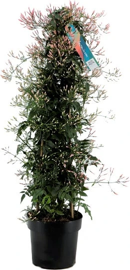Deze Jasmijn voelt zich het beste in de halfschaduw. Een maal per week water is voldoende.