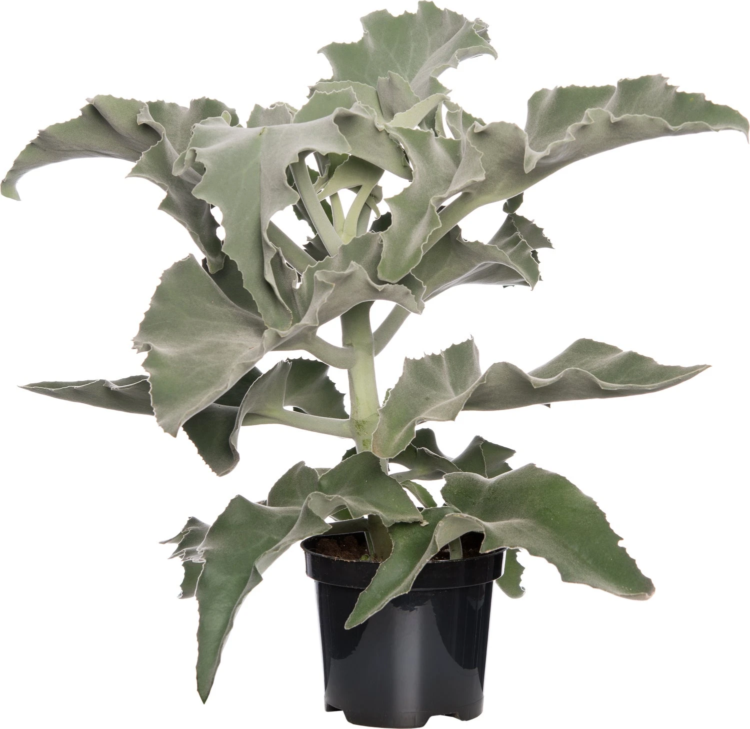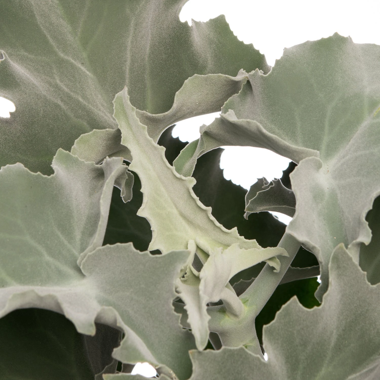 Deze lichtgroene beauty met een grijzige waas heeft puntige bladeren. Het blad is dik en viltachtig met gekartelde randen. Aan de onderkant is het blad gewelfd, waardoor het lijkt op olifantenoren; vandaar de bijnaam ‘Olifantsoor’.