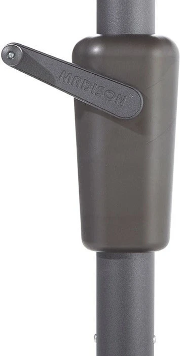 Creeër schaduw in je tuin met deze grote en luxe zweefparasol. Deze asymetric sideway parasol heeft de kleur sage en komt uit de Madison Topline serie. De parasol heeft een unieke opdraaimanier, waardoor je de buitentafel niet hoeft te verplaatsen bij het indraaien van de parasol. Het parasoldoek is van gemaakt van 100% polyester en is waterafstotend door middel van een waterafstotende PA-coating. Het doek is 220 grams (grade 6) met een 50% UV protectie, wat 2000 zonuren garandeert!