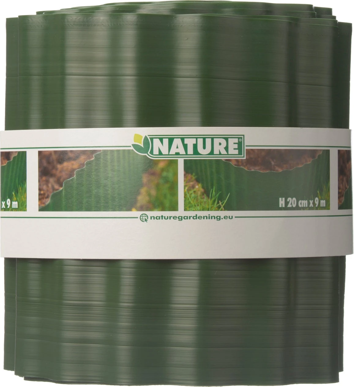 Nature grasrand gemaakt van groen polyethyleen. Ideaal voor het begrenzen van planten en bloemperken. Afmeting H20cmx9m.
