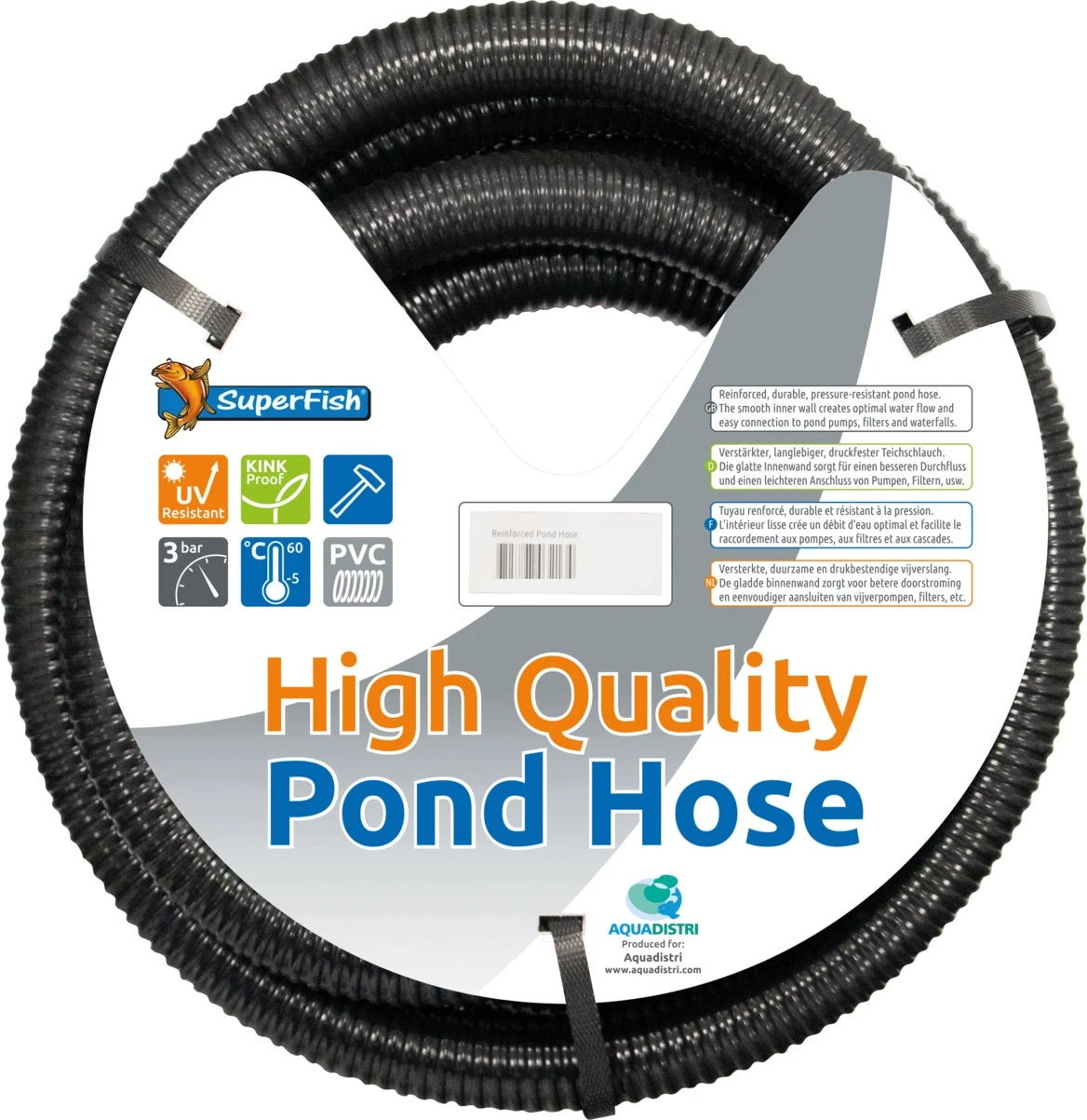 Deze gewapende vijverslang van Superfish heeft een gladde binnenwand en is van hoge kwaliteit. Geschikt voor het gemakkelijker aansluiten van vijverpompen op vijverfilters, watervallen en waterfiguren. De slang heeft een diameter van 25 mm en is 10 meter lang.