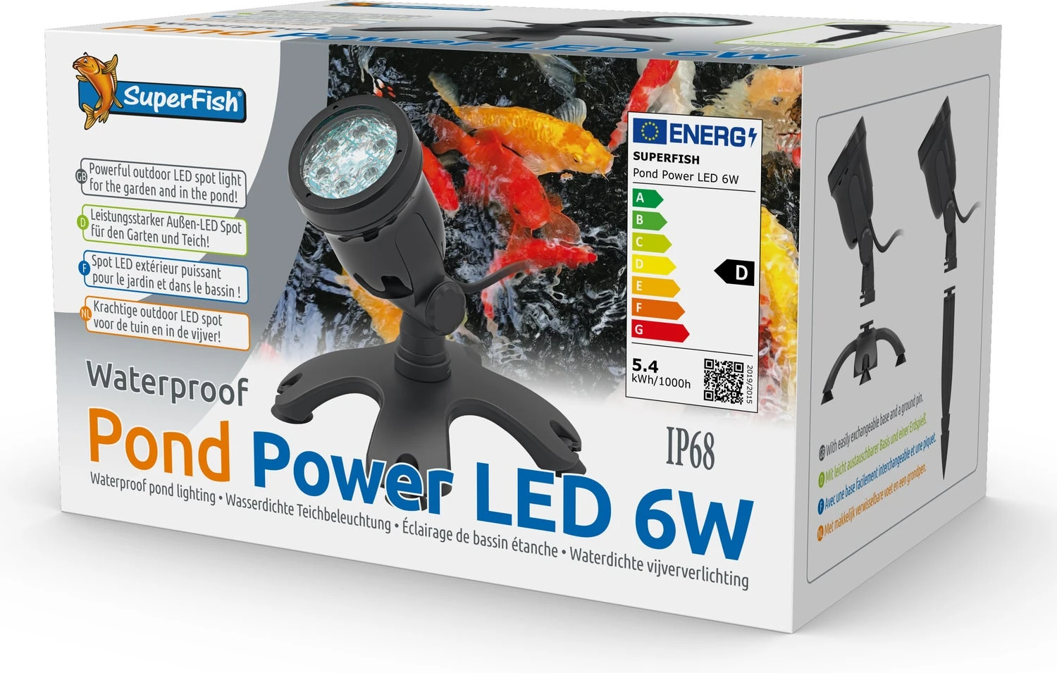 Vijververlichting Power LED is een krachtige LED spot voor in de tuin of vijver. Geschikt voor buiten- en onderwatergebruik, volledig waterdicht (IP68). De LED’s zorgen voor een zeer heldere lichtbundel. Kan overal in de tuin of in de vijver geplaatst worden (10 meter kabel). Stevige aluminium behuizing, voorzien van een verwisselbare stabiele voet en grondpen. De spot is verstelbaar in verschillende richtingen.