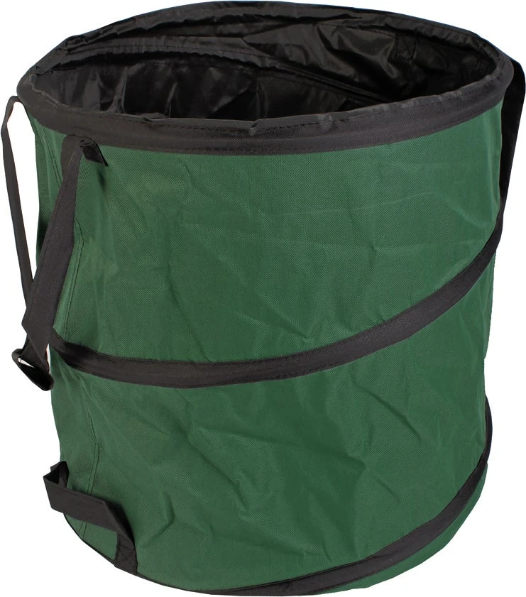 Deze tuinafvalzak is voorzien van een veer. Zodat als je hem uit de verpakking haalt de zak direct overeind springt en open blijft staan. Zeer handig bij het verzamelen van bladeren en ander tuinafval. Deze tuinafvalzak heeft een diameter van 47 cm en een hoogte van 50 cm. Mocht je klaar zijn met de arbeid, kun je de tuinafvalzak weer netjes in elkaar vouwen, zodat hij minder ruimte in beslag neemt bij het opbergen.