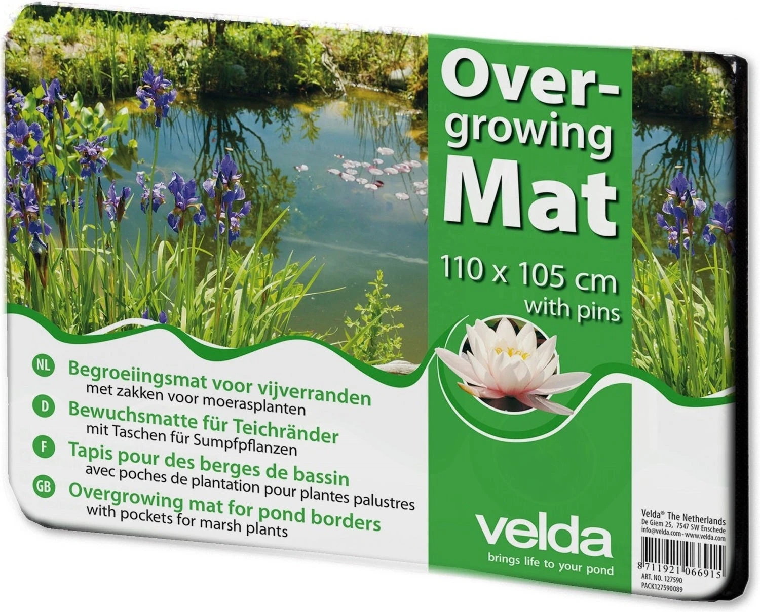 Met deze begroeiingsmat van Velda maak je een prachtige overgang tussen de oeverrand en de vijver. De mat bevat vele ‘zakken’ waarin moerasplanten kunnen worden gepoot. Hiermee verkrijg je een natuurlijk begroeide overgang tussen het wateroppervlak en de oeverrand. Met 5 bevestigingspennen.