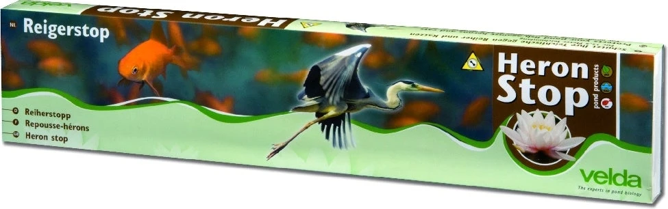 De Heron Stop is een omheining om je vijver. Door een draad om de vijver te spannen, waaraan rinkelende belletjes worden vastgemaakt, worden reigers afgeschrikt en blijven van de vissen in de vijver af.