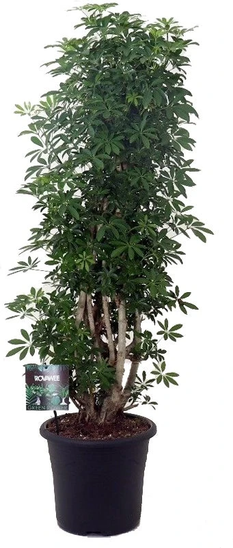 De Schefflera is familie van de Klimop en is eveneens een sterke plant. De aparte bladeren die rondom een steeltje zitten zijn ovaal van vorm en geven het blad vingers, wat de Nederlandse naam ‘Vingersboom’ heeft opgeleverd. De plant kan ook in huis luchtwortels krijgen. Deze kunnen een extra sierwaarde zijn maar vind je ze niet mooi, dan kunnen ze zondermeer weggeknipt worden. Geef deze Vingersboomeen plekje met indirect licht, dan is er verder weinig omkijken naar.